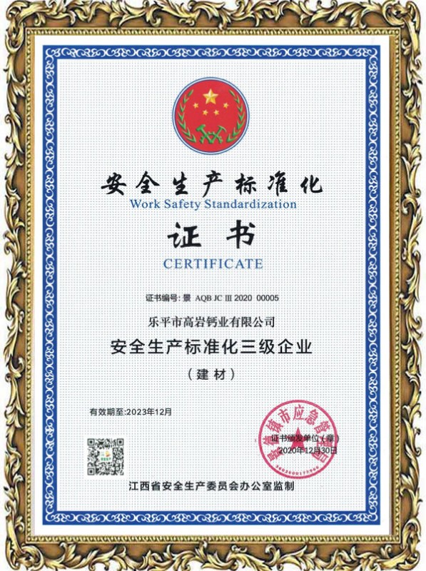 安全生產(chǎn)標準化證書