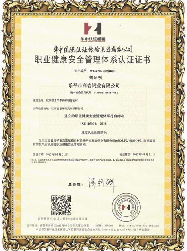 職業(yè)健康安全管理體系認證證書